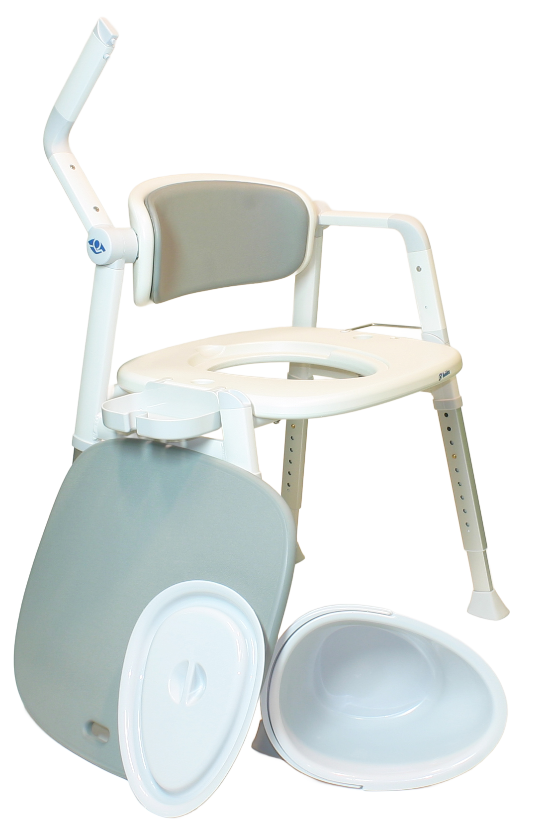- Seine abschwenkbaren Armlehnen sorgen für einen einfacheren Transfer beim Toilettengang, z.B. vom Pflegebett auf den Toilettenstuhl. Vorab nehmen Sie das Sitzpolster ab, entnehmen den Deckel vom Toiletteneimer und können sich an das weiche Rückenpolster anlehnen. Sichere Armlehnen erleichtern das Hinsetzen und Aufstehen.
