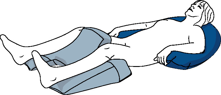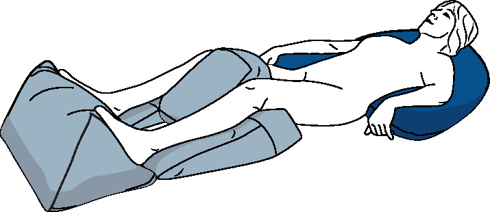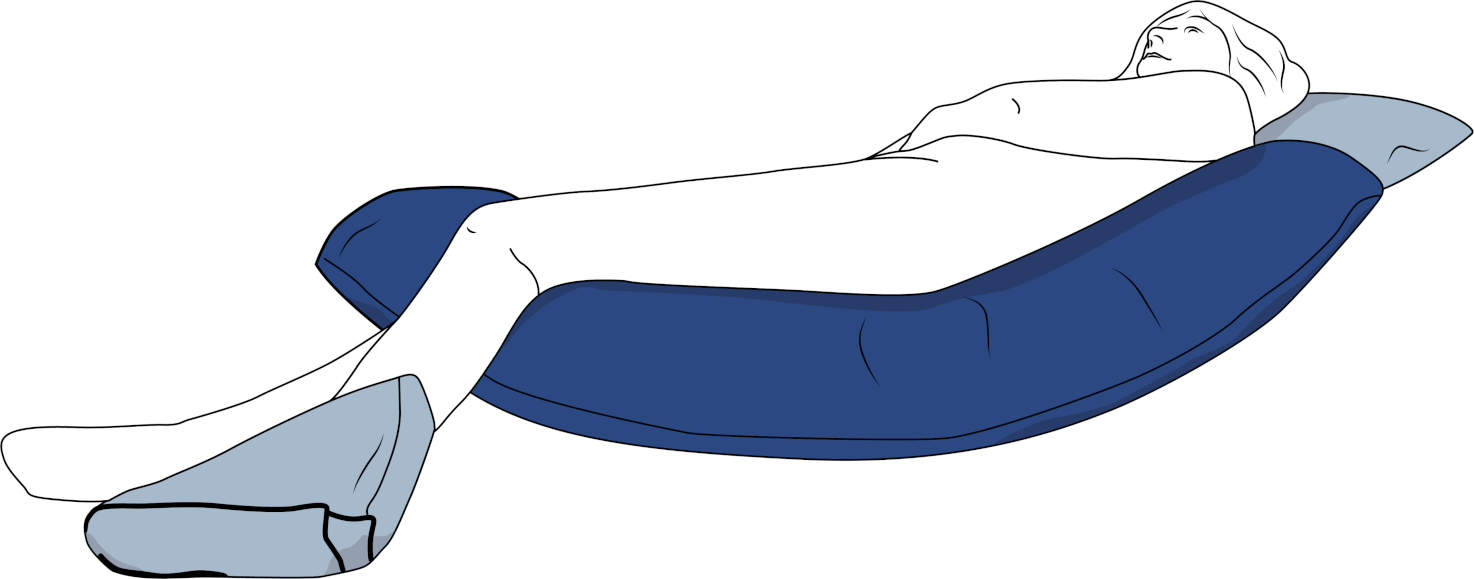 - in mittiger Platzierung zur Entlastung der Sehnen und Bänder der unteren Extremitäten unter den Oberschenkeln, als Entlastung im Gesäß- und Kreuzbeinbereich oder als Unterfütterung der Knie