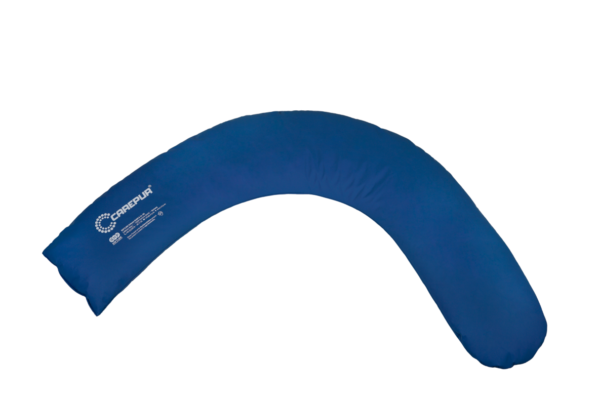 Das Carepur Halbmondkissen M ist ein 1,80 m langes sichelförmiges Lagerungskissen von SHP Softline, zur Positionierung und Freilagerung verschiedener Körperareale bettlägriger Personen. Seine körperlange, schlauchförmige C-Form platziert den bettlägrigen Patienten im Pflegebett spürbar druck entlastend und fördert so seine Eigenwahrnehmung. Es wird als wirkungsvolle Lagerungshilfe z.B. in der Altenpflege gesetzt.