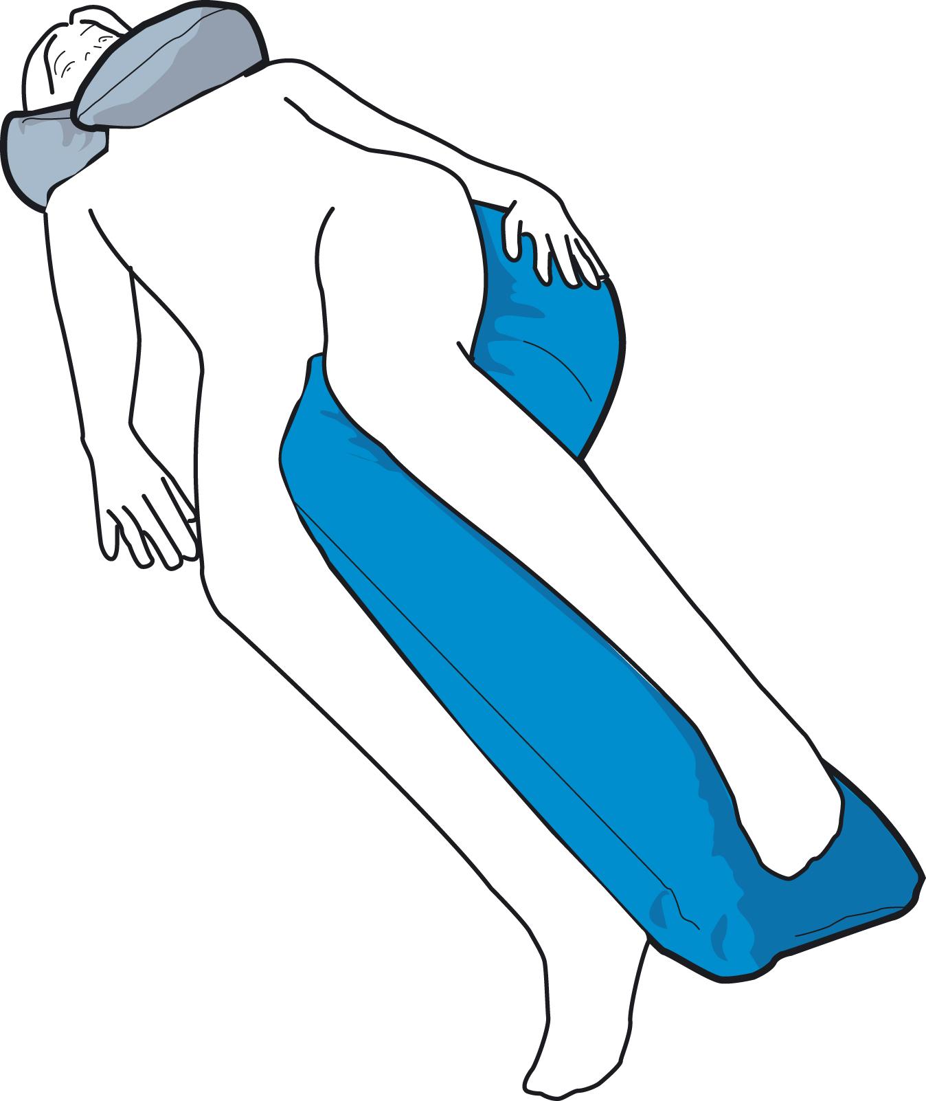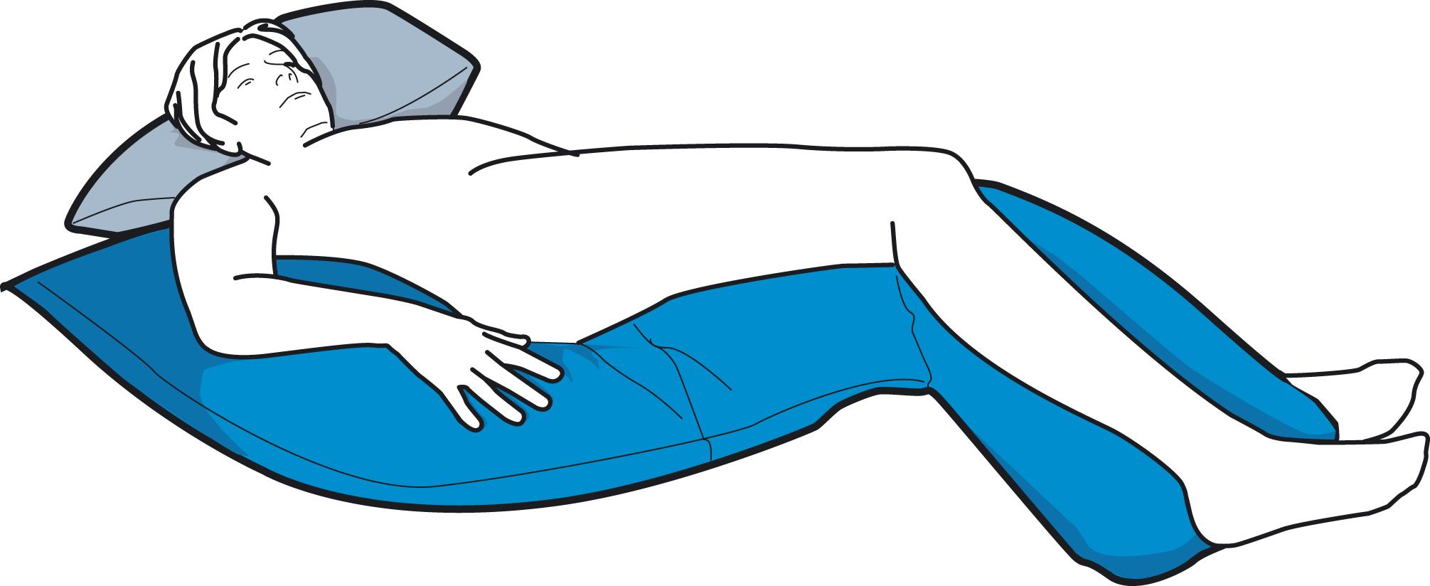 - In dieser Positionierung wird das CAREPUR Seitenlagerungskissen M direkt an den abzustützenden Regionen Schulter, Rücken und Becken sowie zwischen den Beinen platziert. Der Oberkörper sowie die Hüfte werden druckentlastend gestützt, ein Aufeinanderliegen der Knie verhindert und die Ferse freigelagert. Diese Anwendung unterstützt zudem eine physiologische Beinstellung.