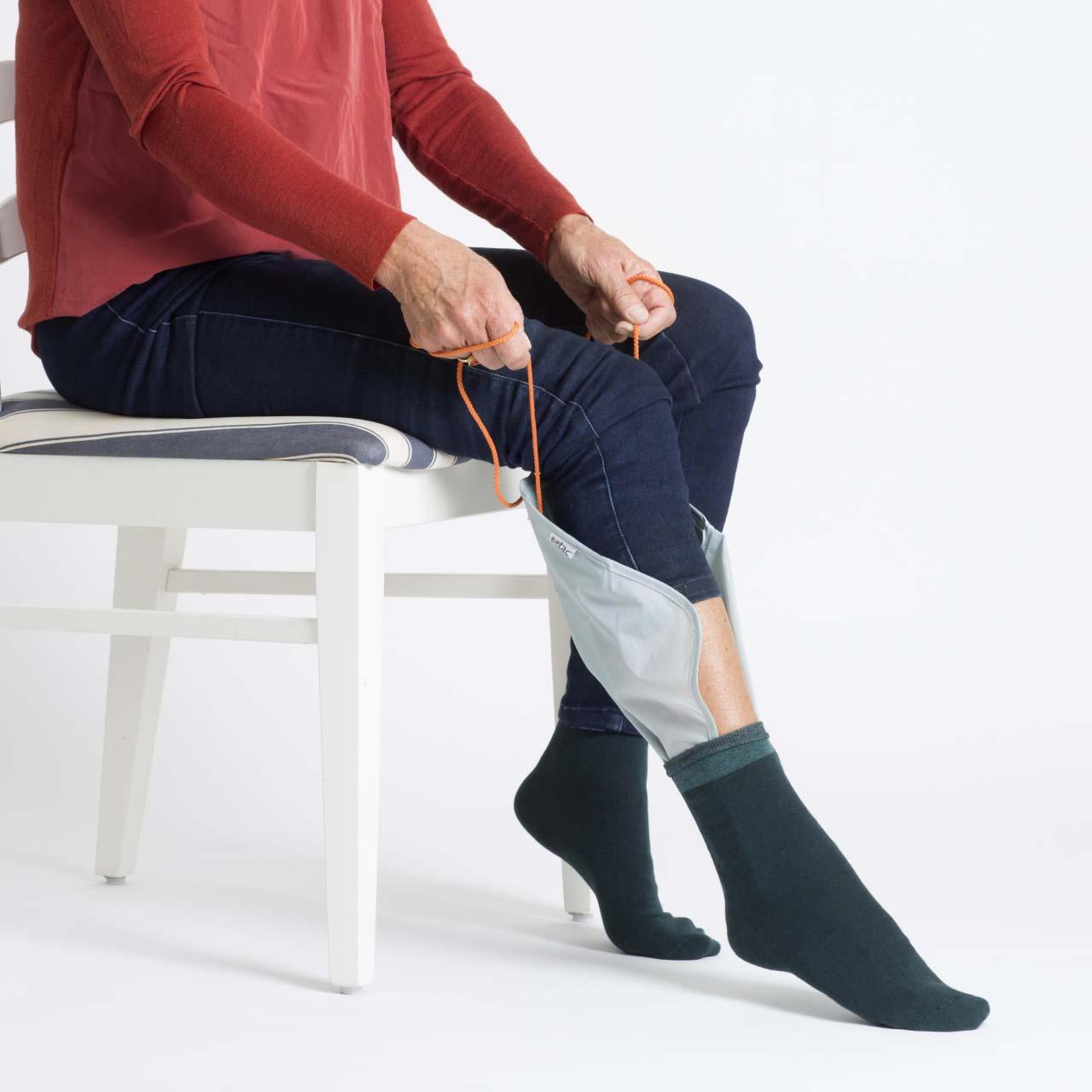 Anonym23.11.2023Wegen Hüftathrose kann ich meinen rechten Fuß nicht mehr mit den Händen erreichen. Mit dieser Anziehhilfe kann ich auch die rechte Socke allein anziehen.