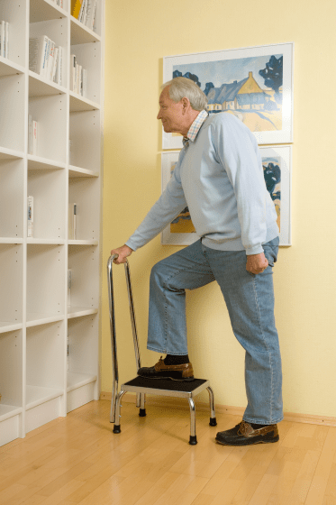Der Fußtritt mit Haltegriff aus verchromtem Stahlrohr hilft beim Erreichen sonst schwer erreichbarer Gegenstände im Haushalt, z.B. aus oberen Regalböden oder Schränken. Darüber hinaus unterstützt der Fußtritt das sichere Einsteigen in die bzw. aus der Badewanne. Die gummierte Anti-Rutschauflage der Trittfläche erhöht den festen Stand, auch bei nassen Füßen.