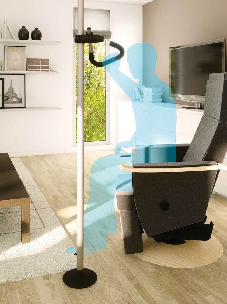 Die einfache Montage ermöglicht es Ihnen, die Haltestange Gripo überall schnell und einfach dort zu platzieren, wo Sie sich aufrichten oder niederlassen wollen. Dank des Teleskop-Mechanismus klemmt sie fest zwischen Zimmerdecke und Fußboden, kann aber ruckzuck an einer anderen Stelle positioniert werden.