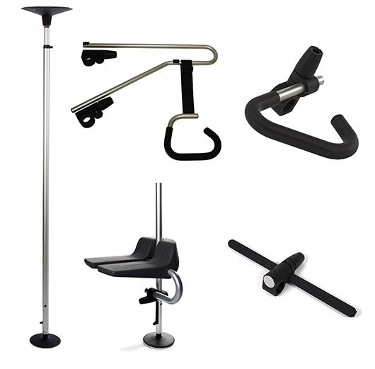 Wenn Sie die mobile Haltestange Gripo von Hepro online kaufen, können Sie die Boden-Decken-Stange allein als Stützgriff oder mit dem optional auch nachbestellbarem Zubehör einsetzen.