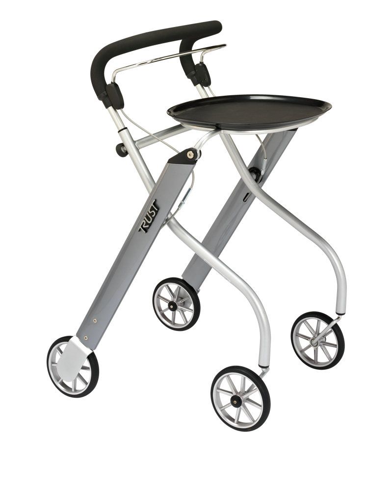 J.S.04.09.2016Obwohl der Rollator auf den ersten Blick nicht besonders belastbar ausschaut, ist er doch sehr stabil und für mich mit knapp 60 kg Gewicht leichtgängig zu bewegen. Gut gelöst ist die bequeme 1-Hand-Bremse und auch die in einem Ring befestigte Tasche, in welchen zusätzlich ein stabiles Tablett eingelegt werden kann. Alles in allem bin ich sehr zufrieden mit dem Gerät und benutze es täglich.