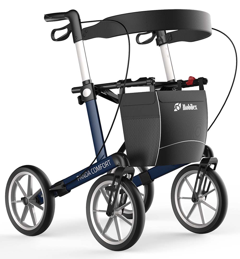 - Der Mobilex Panda Comfort Outdoor Rollator ist serienmäßig mit einem Rückengurt ausgestattet, der Ihnen während der Laufpausen auf dem stabilen Sitznetz den richtigen Halt und Sicherheit beim Sitzen gewährleistet. Der Sitz ist aus strapazierfähigem, langlebigem Nylon gefertigt.