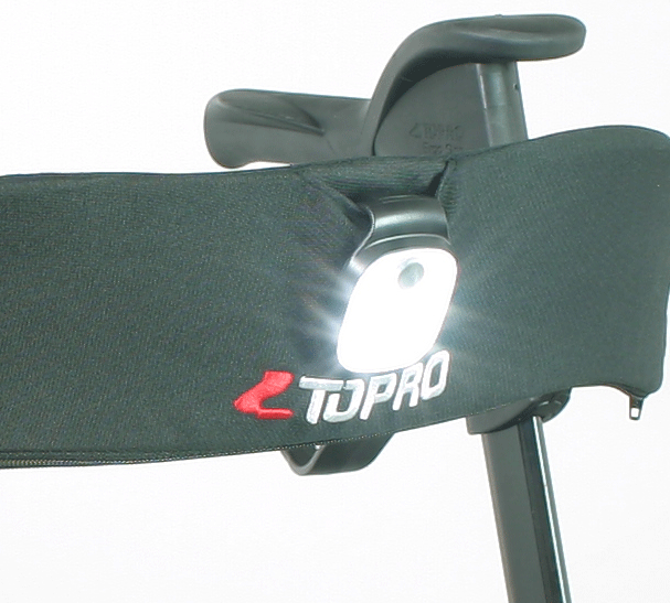 Die Topro LED-Lampe wird einfach mit einem Clip an Ihrer Jacke, am Einkaufsnetz oder am Topro Rückengurt kurz/lang direkt an Ihrem Topro Rollator befestigt. Sie gibt Ihnen in der dunklen Tageszeit Sicherheit und macht Sie im Straßenverkehr sichtbar. Die Lampe leuchtet in 3 Helligkeits-Weißlicht-Stufen oder kann gut als Rücklicht mit den roten Lichtimpulsen genutzt werden. Die verschiedenen Stufen lassen sich durch Drücken der Ein-/Aus-Taste einstellen.